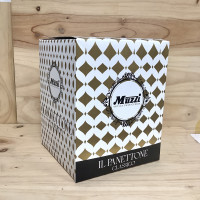Le Panettone Classico,au format de 500g,est conservé dans un élégant étui qui rappelle les emballages de pâtisserie d’antan.