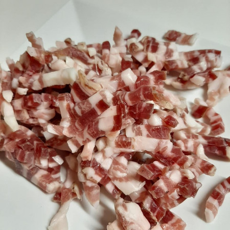 Lors de la production de ces lardons, il n'a été utilisé qu'entre 5,4 et 6 mg de sel nitrité /kg de viande afin de lutter efficacement contre certaines bactéries et de permettre une meilleure conservation.