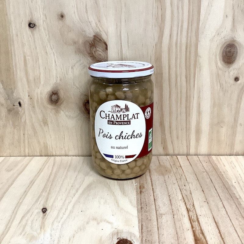 Ingrédients : pois chiches*, eau, sel de Guérande. *Produit issu de l’agriculture biologique - Sans additifs - Peut contenir des traces de gluten.