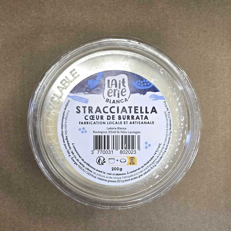 Coeur de Burrata fait à quelques kilomètres de Toulouse dans la pure tradition des Pouilles à partir du lait de vache cru de la ferme des Cabricoles.
