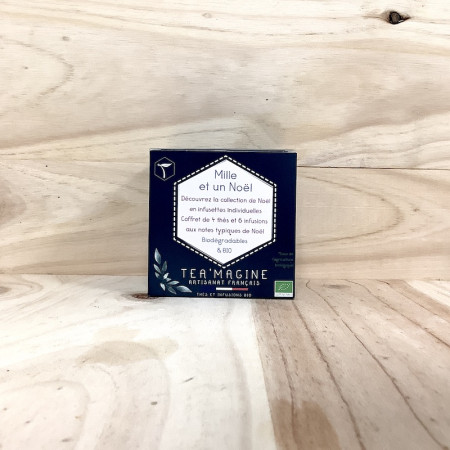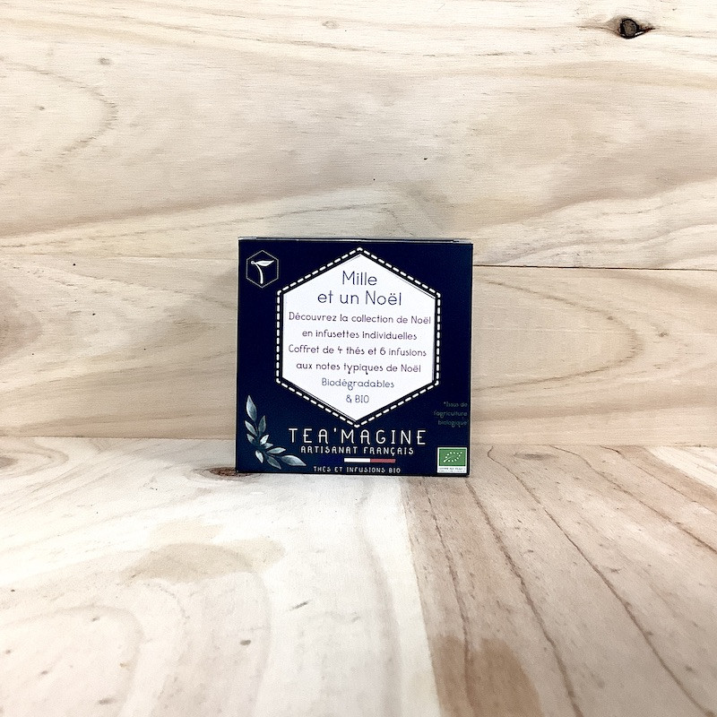 Une boîte de 10 infusettes en pochette individuelle biodégradable autour de Noël,